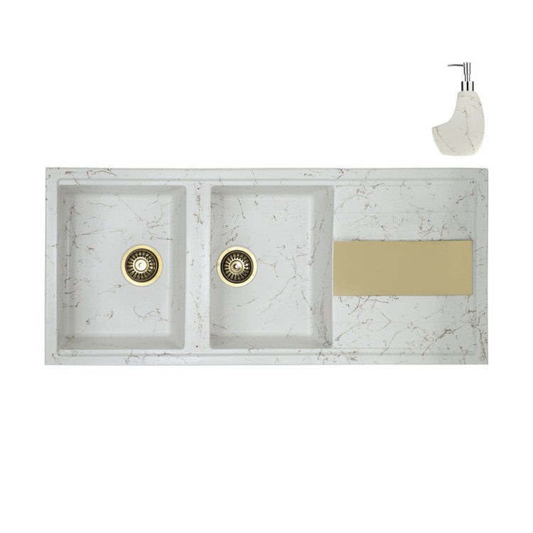 سینک همراه با سیفون طلایی (زیرآب) و جامایع سبک خود سینک ارسال می شود .